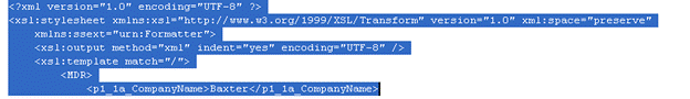 The HtmlXSLT=” EU-QR-P12-01MEDFORM2.XSL” file is used to map the data fields from the complaint record to the data entry template.